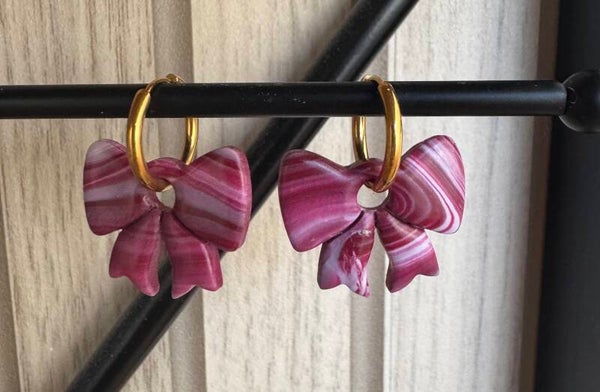 Boucles d'oreilles en pâtes polymère bordeaux blanche et rose fait a la main.