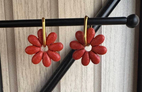 Boucles d'oreilles en pâtes polymère marron orangée fait a la main.