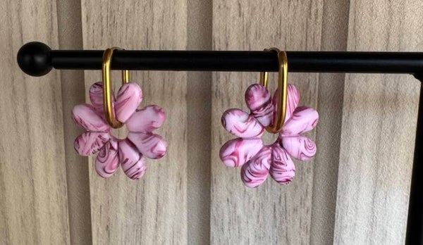 Boucles d'oreilles en pâtes polymère rose et blanche fait a la main.