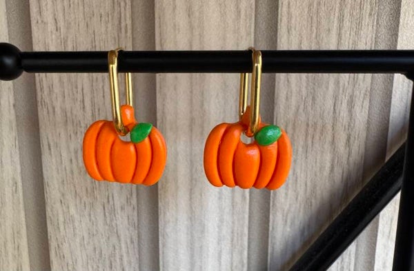 Boucles d'oreilles citrouilles en pâtes polymère fait a la main.