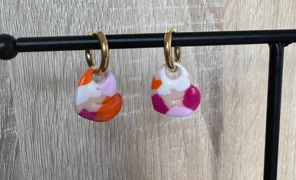 Boucles d'oreilles en pâtes polymère blanche rose et orange faite a la main.