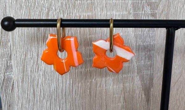 Boucles d'oreilles en pâtes polymère orange et blanche faite a la main.