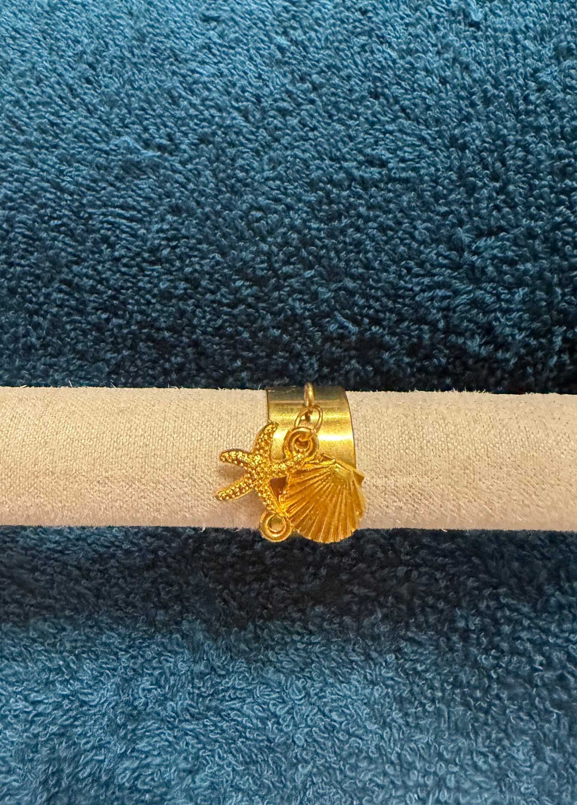 Bague a breloque coquillages et etoile de mer.
