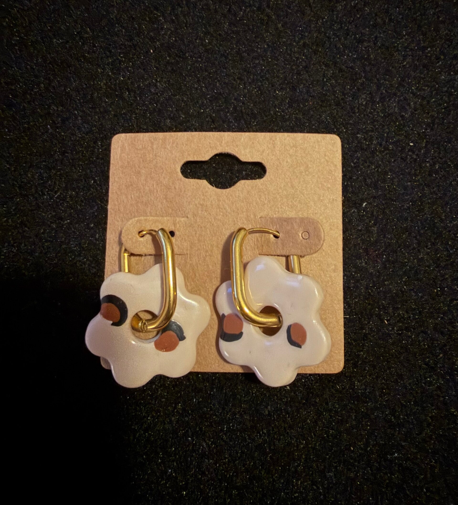 Boucles d'oreilles anémone léopard en pâtes polymère faite à la main.