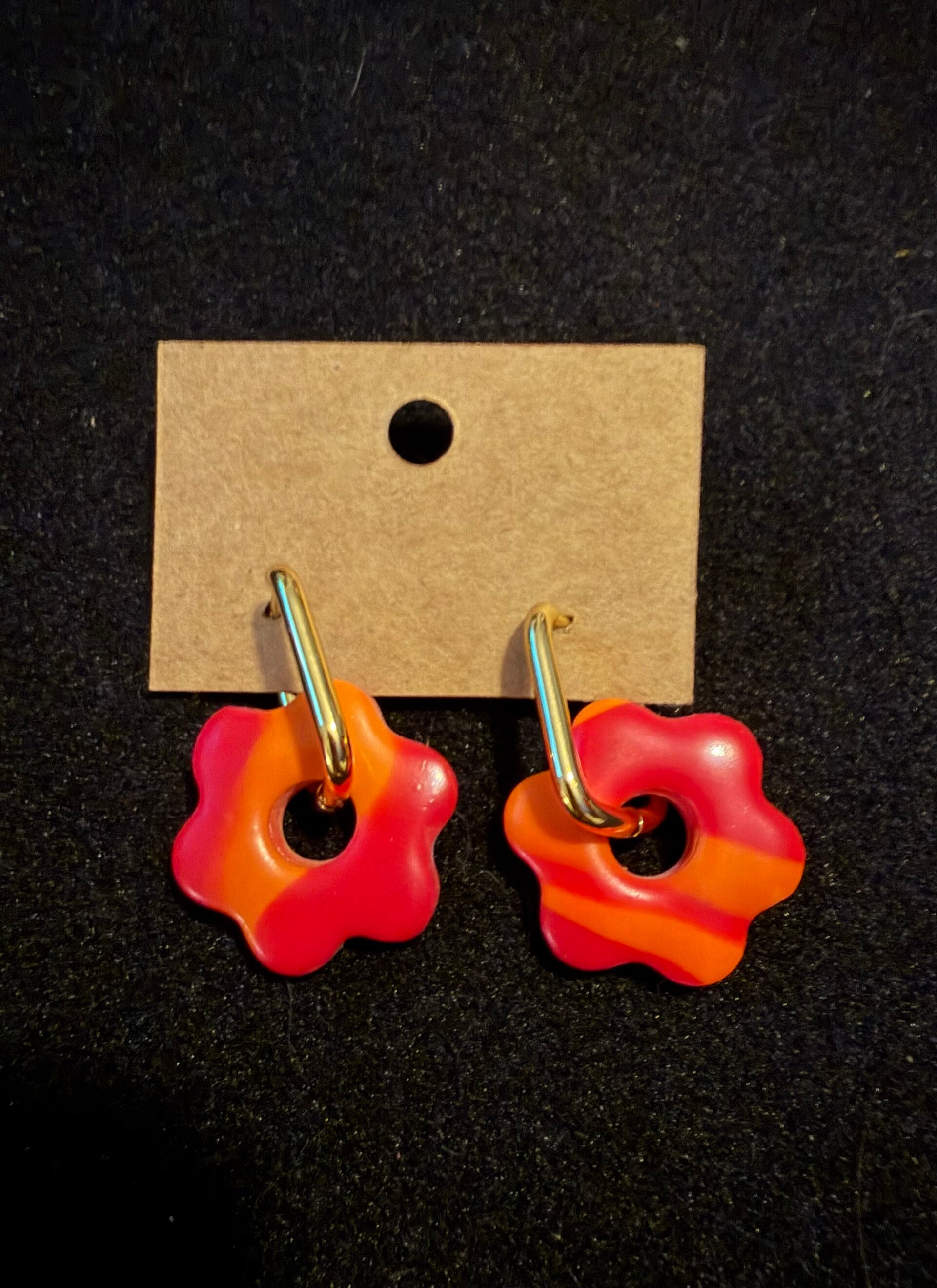 Boucles d'oreilles anémone rouge et orange en pâtes polymère faite a la main.